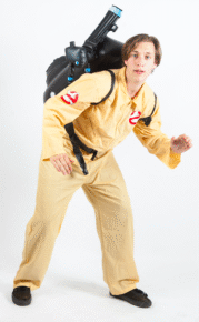 • The entertainer explains they left the birthday child’s present back in the Ghostbusters’ HQ, so they’ll make a special balloon model instead.